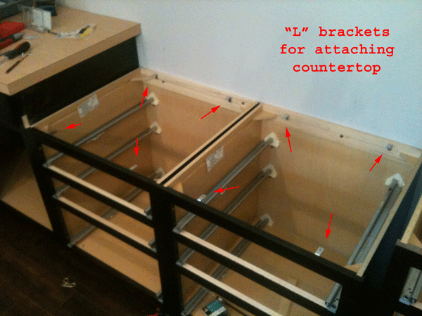 How to fasten laminate countertops to cabinets.