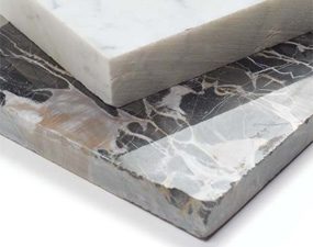 When more intense cleaning is required, pour a little clear non-sudsing ammonia onto a cleaning cloth, wipe the marble surface and buff dry. Granite tiles are less expensive than slab granite, but you'll have more seams. Solid surface countertops are manmade, yet they mimic the look of natural materials such as stone, glass and wood.