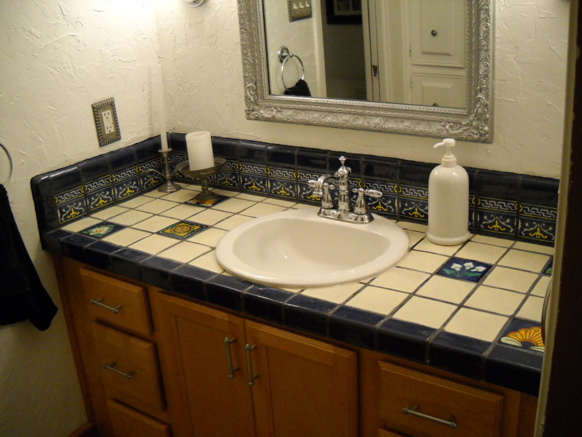 Bathroom countertop and vanity using terra cotta Mexican ...